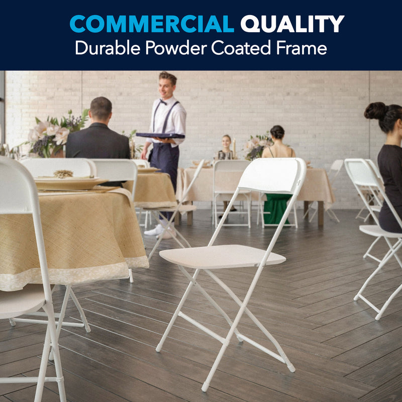 Commercial-grade plastic folding chairs designed to be lightweight but durable. This product is engineered and built with premium materials that will withstand heavy duty use for event, business and home usage.